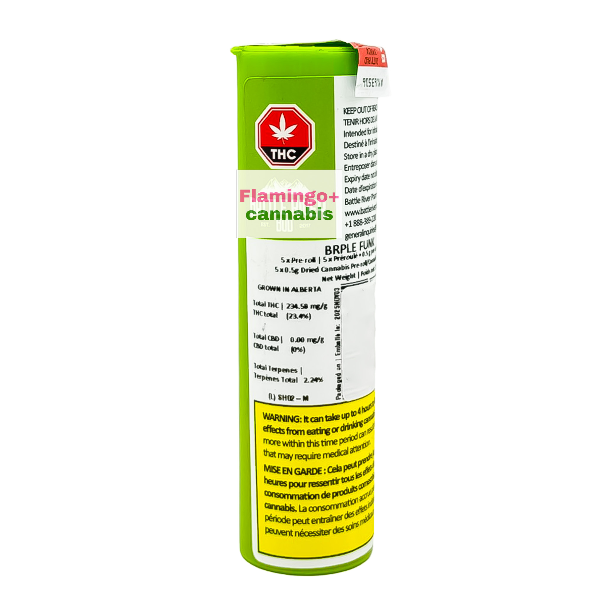 At Flamingo Cannabis in Calgary, Battle River Bud BRPLE Funk Pre-Rolls are a great option for customers who enjoy gas-heavy indica strains with earthy character and a hint of citrus on the finish.
