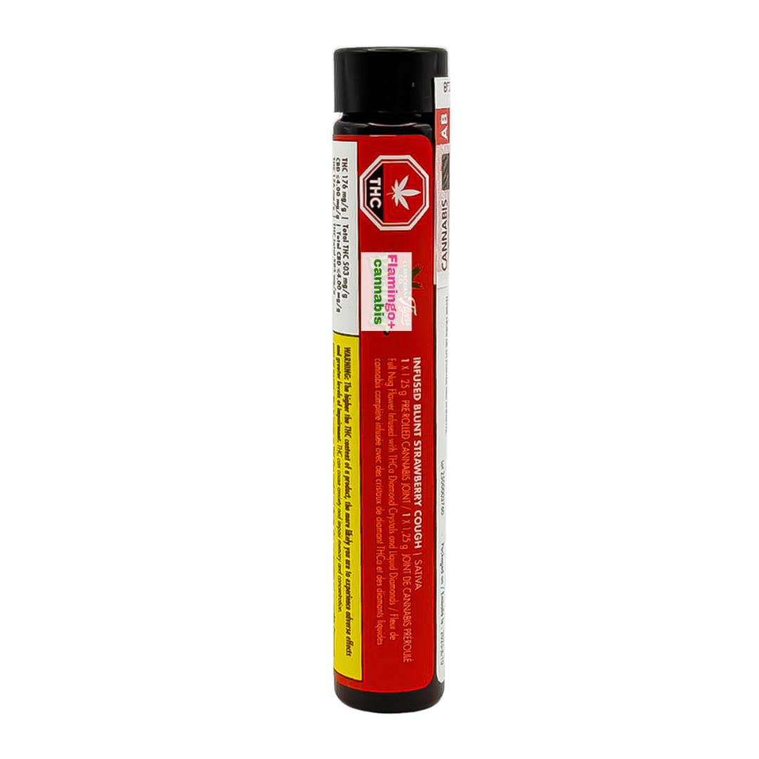 The Claybourne Flyers Strawberry Cough Liquid Diamond Infused Sativa Blunt (1x1.25G), available now at Flamingo Plus Calgary, is an explosion of flavour, potency, and smoothness rolled into one next-level smoke. Perfect for sativa lovers and flavour chasers alike, this blunt redefines what premium infused cannabis should be.