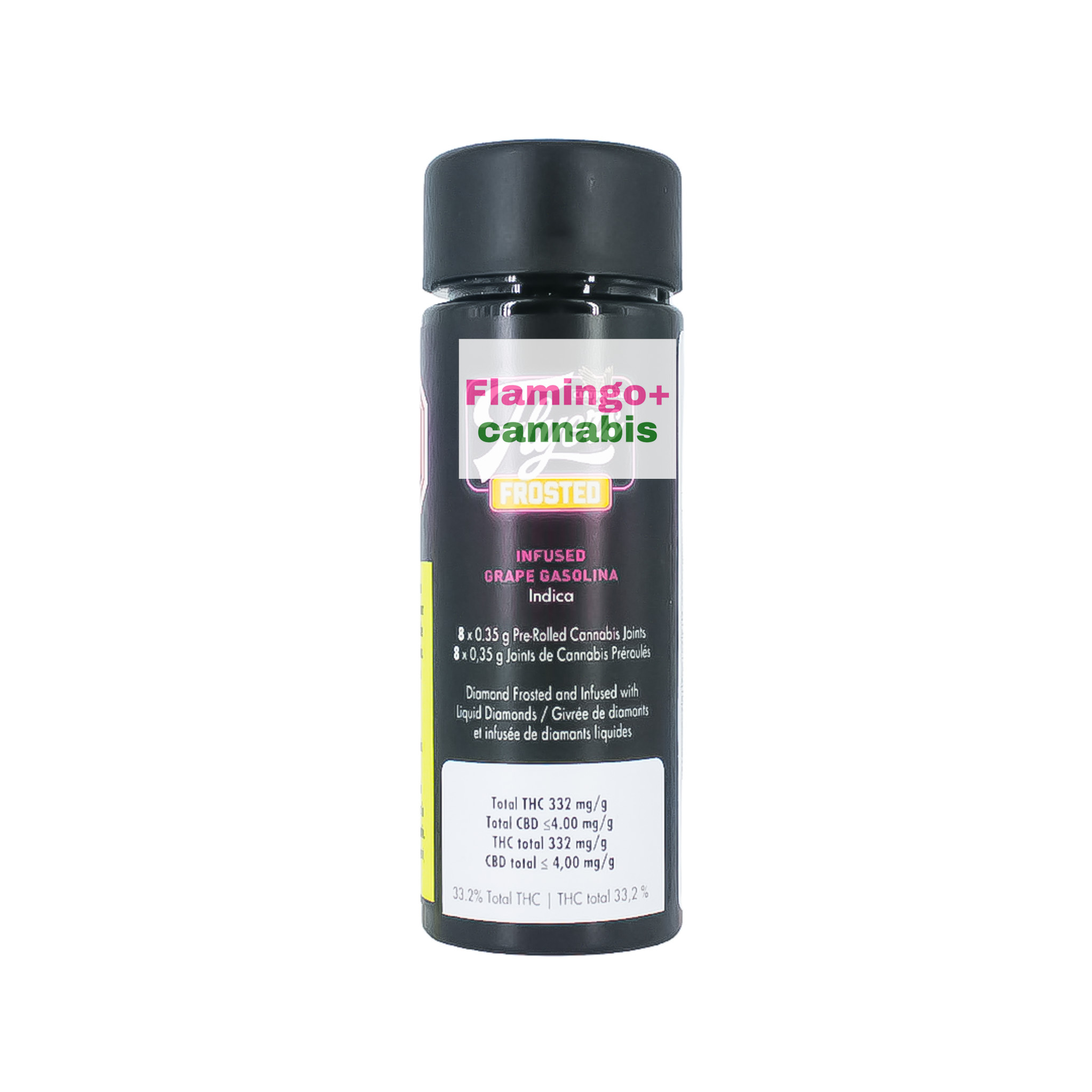 At Flamingo Cannabis in Calgary, Claybourne Frosted Flyers Grape Gasolina Infused Pre-Rolls are a great option for customers looking for bold terpene flavour and diamond-infused intensity in a convenient pre-roll format.
