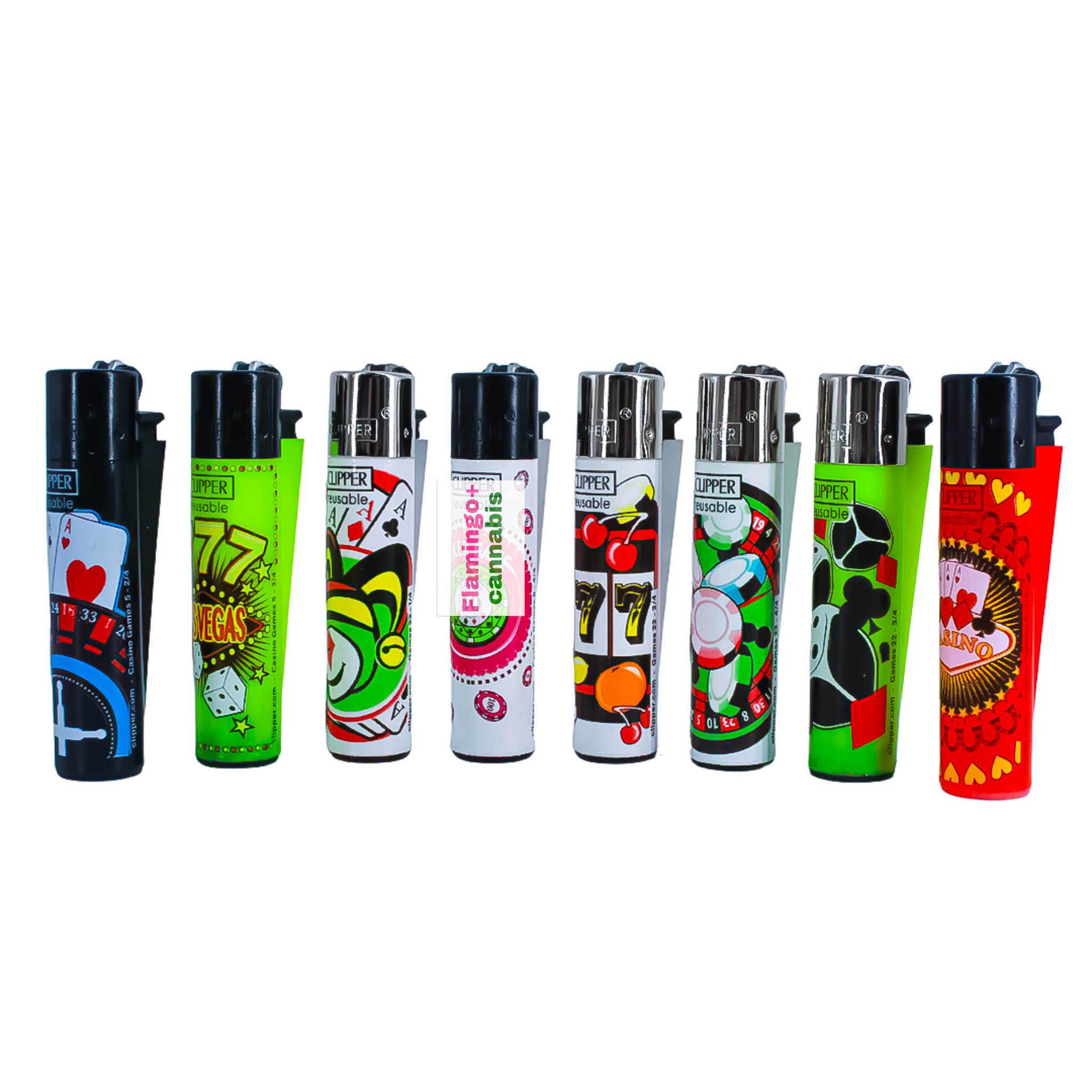 The Clipper Refillable Lighter – Casino Design brings classic Clipper reliability wrapped in a bold, decked-out look that feels straight out of a high-stakes Vegas night. Whether you’re sparking a pre-roll, lighting your glass piece, or keeping it handy for everyday use, this lighter mixes function, personality, and long-term value in one sleek piece.