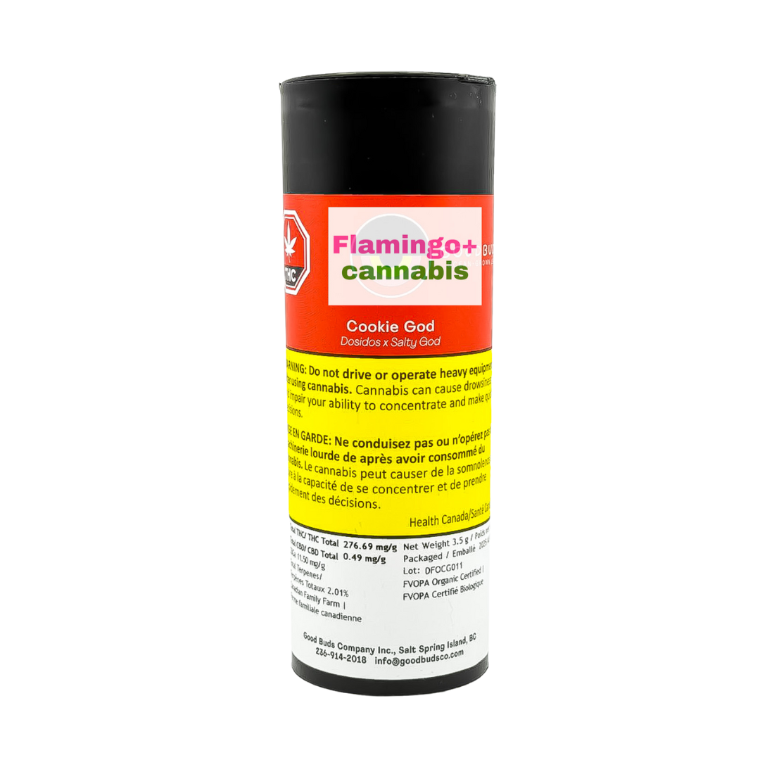 Grab Good Buds Cookie God Sativa Flower 3.5G at Flamingo Plus Calgary — Alberta’s destination for dessert-flavoured sativas, organic craft flower, and full-flavour small-batch cannabis. Shop now and taste the Cookie God greatness.