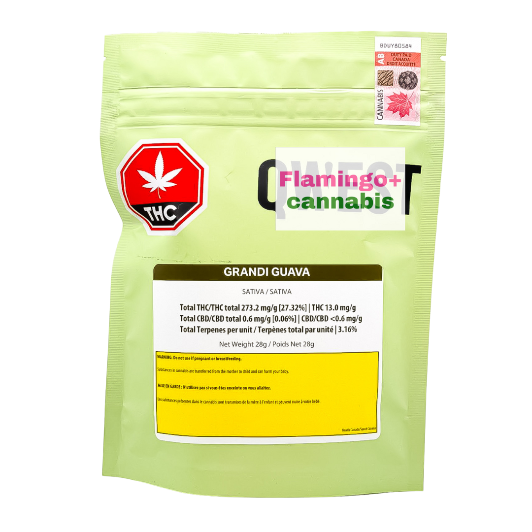 Qwest is known for their meticulous approach to quality, and Grandi Guava shows it in every bud. The nugs are dense, colourful, resin-rich, and beautifully cured, with a terpene expression that leans into big tropical sweetness, subtle peppery warmth, and deep fruity undertones. Each inhale delivers a vibrant wave of tropical fruit, followed by a sprinkle of spice and a soft, sugary finish that lingers like a tropical dessert. It’s layered, elegant, and full of personality—a perfect match for anyone in Calgary looking for a flavour-heavy sativa that doesn’t sacrifice smoothness.