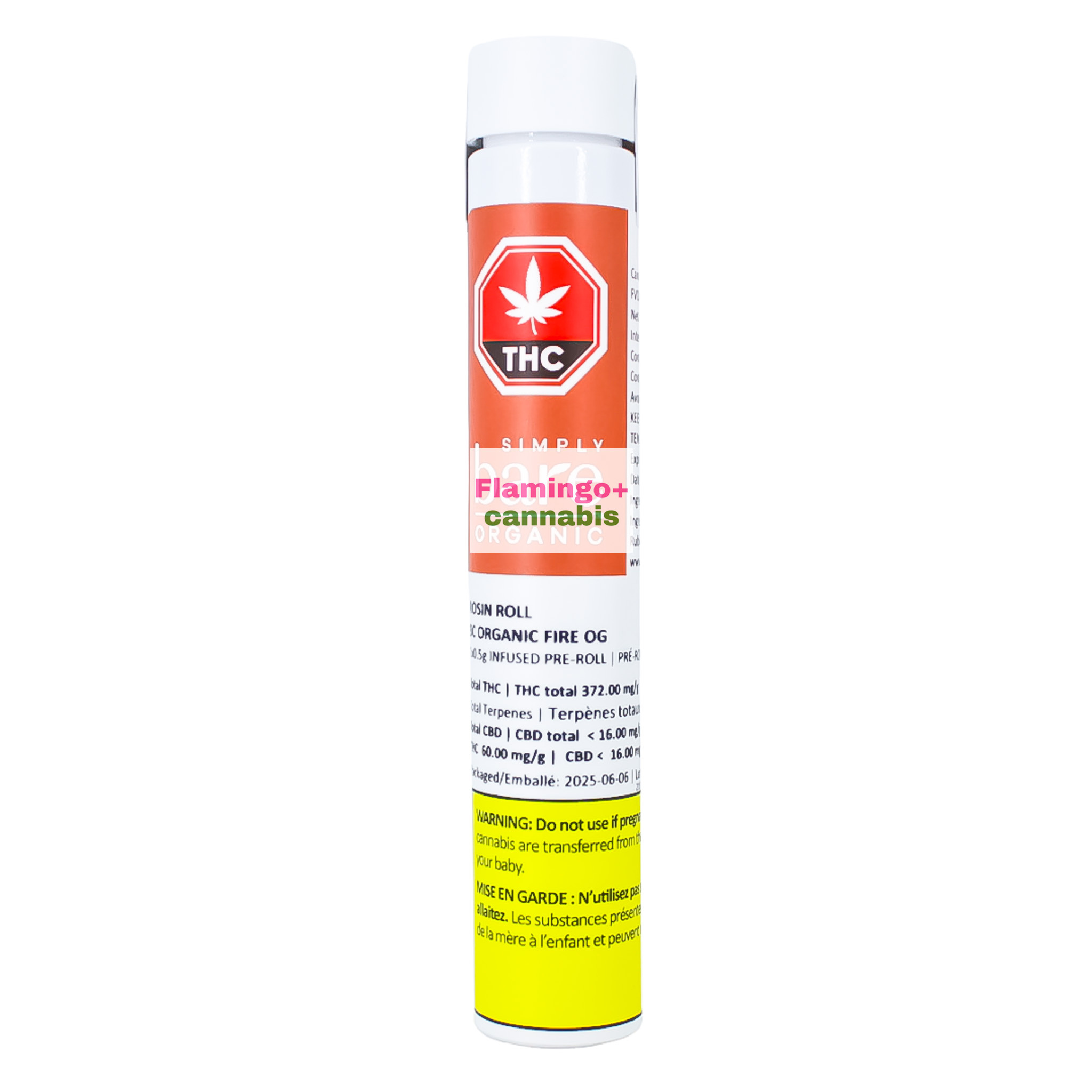 At Flamingo Plus Alberta, this is a top-shelf pick for customers who love classic OG flavour, organic growing methods, and a premium rosin-infused pre-roll that hits heavy, smooth, and beautifully old school.