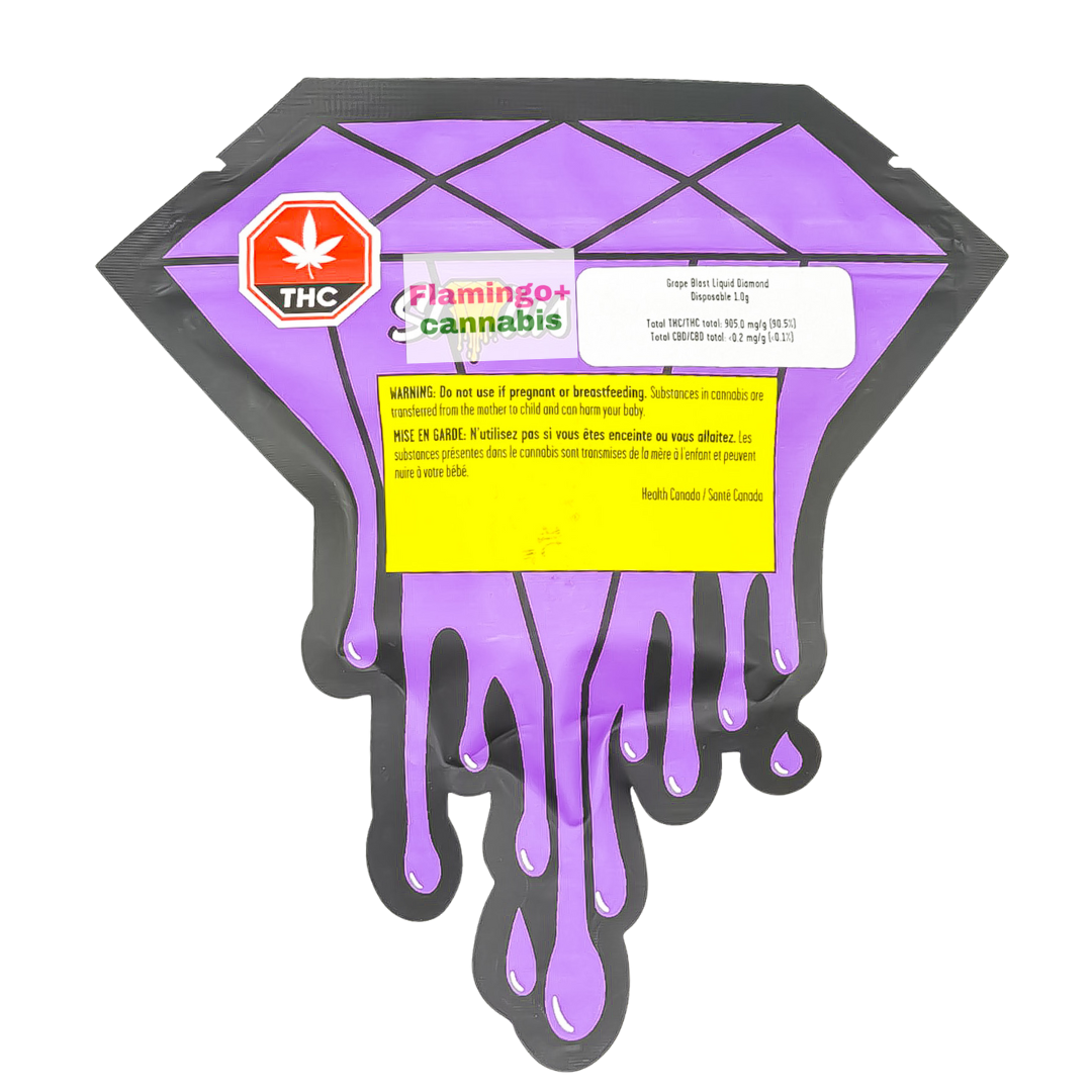 Introducing the Status Grape Blast Liquid Diamond Indica Disposable (1G), now available at Flamingo Plus Calgary. This isn’t just a vape; it’s a statement piece. Filled with high-potency liquid diamond extract, this all-in-one disposable delivers the ultimate in flavor, smoothness, and convenience — all wrapped in the dazzling, juicy goodness of Grape Blast.