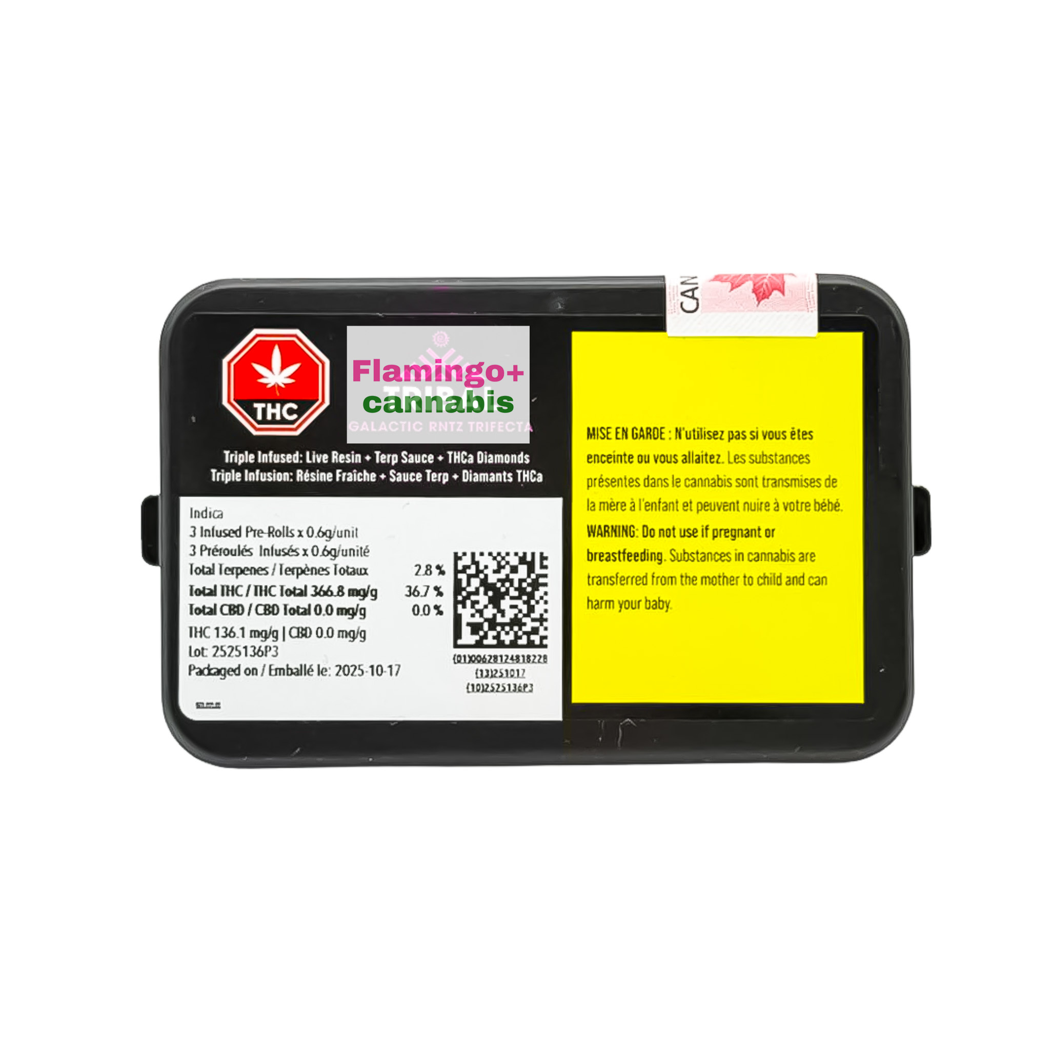 At Flamingo Cannabis in Calgary, Tribal Galactic Rntz Trifecta Infused Pre-Rolls are a great option for customers who want a premium infused joint with layered flavour and a smooth, elevated smoking experience.