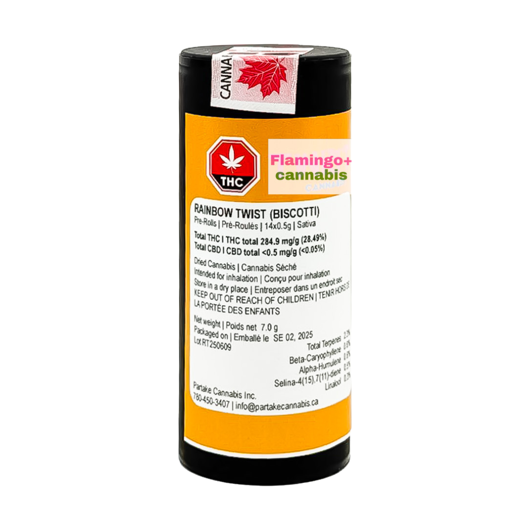 Grab your Rainbow Twist Sativa Pre-Rolls 14X0.5G at Flamingo Plus Calgary — Alberta’s best spot for flavourful, affordable pre-roll packs. Shop now and roll through the rainbow without breaking the bank.