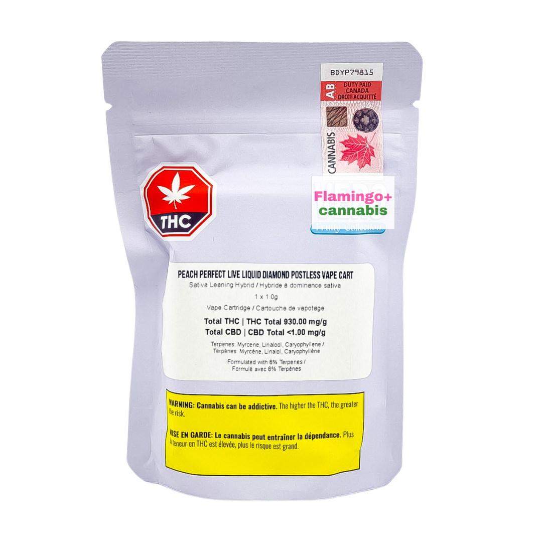 Meet your new sunshine-in-a-cart: Vero Peach Perfect Liquid Diamond Postless Sativa Cartridge 1G — a vibrant, fruity masterpiece that hits as smooth as it tastes. Part of Vero’s Fruity Collection, this live liquid diamond sativa vape is infused with the Peach Mimosa strain and enhanced with cannabis and botanical terpenes for a clean, juicy, and truly refreshing experience.