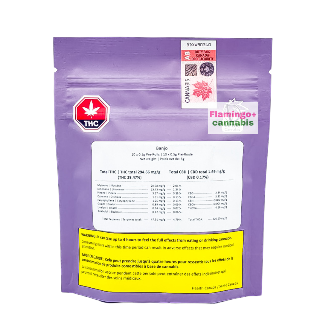 Grab Virtue Cannabis Banjo Sativa Pre-Rolls 10X0.5G today at Flamingo Plus Calgary — your trusted Alberta destination for craft cannabis at unbeatable value.