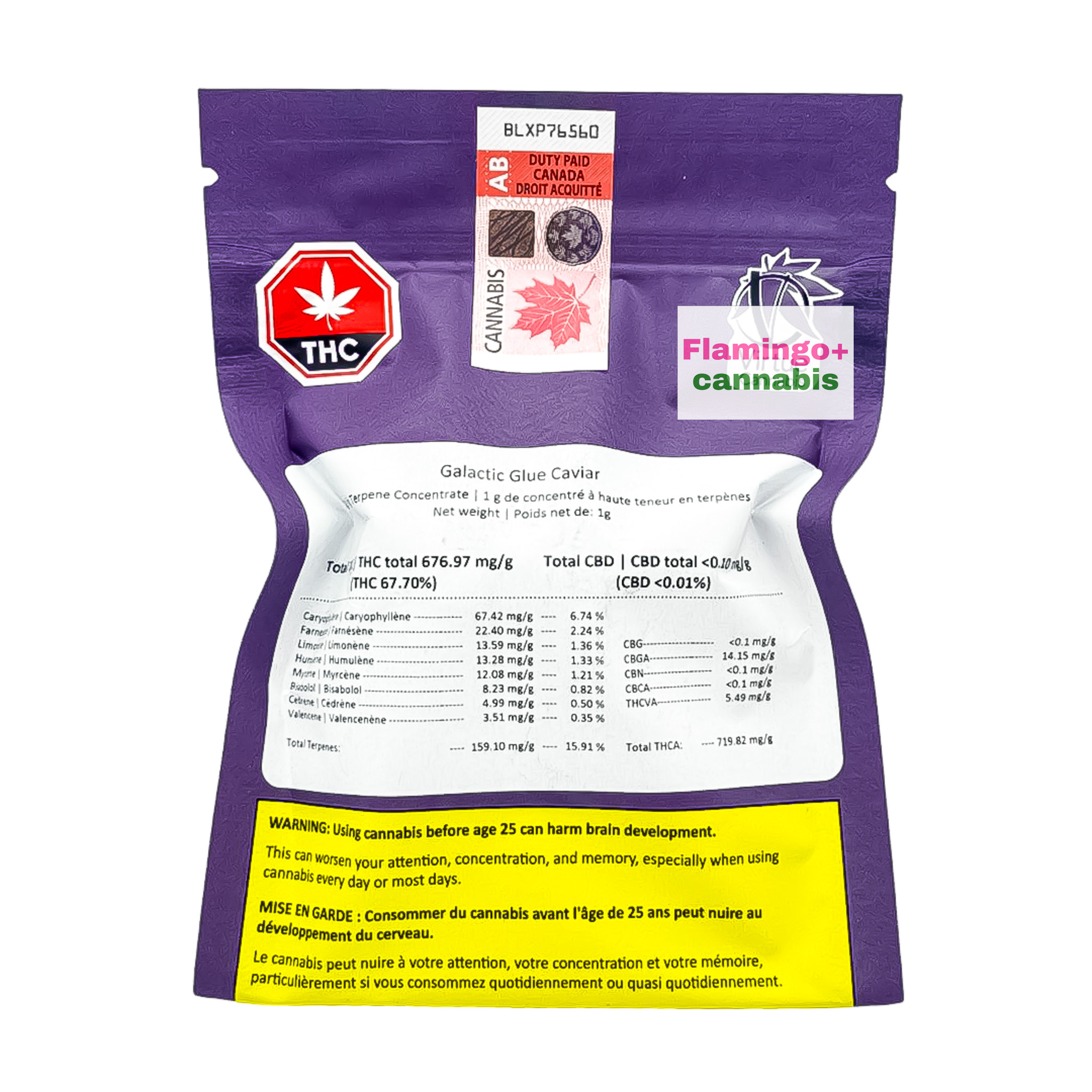 The thick, rich consistency of the caviar makes it ideal for those who enjoy concentrates with a strong terpene presence and a satisfying dab experience. Each pull reveals layers of flavour that reflect the classic lineage behind the Galactic Glue cultivar.