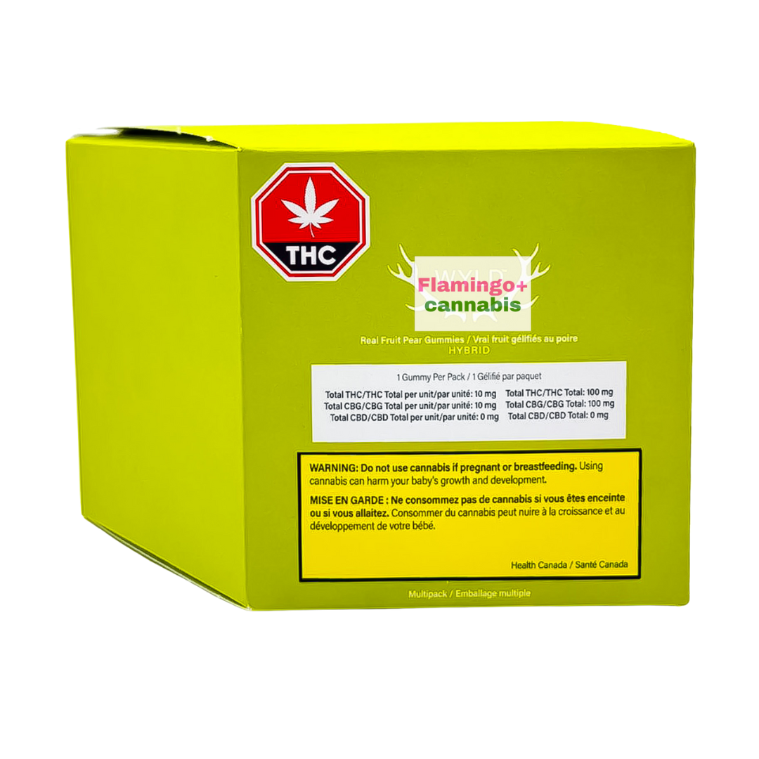 Introducing the Wyld Real Fruit Pear 1:1 THC:CBG Hybrid Gummies Multipack (10x10mg), available now at Flamingo Plus Calgary. These tasty little gems are a flavor-first, function-forward way to bring calm focus and gentle euphoria into your daily routine.