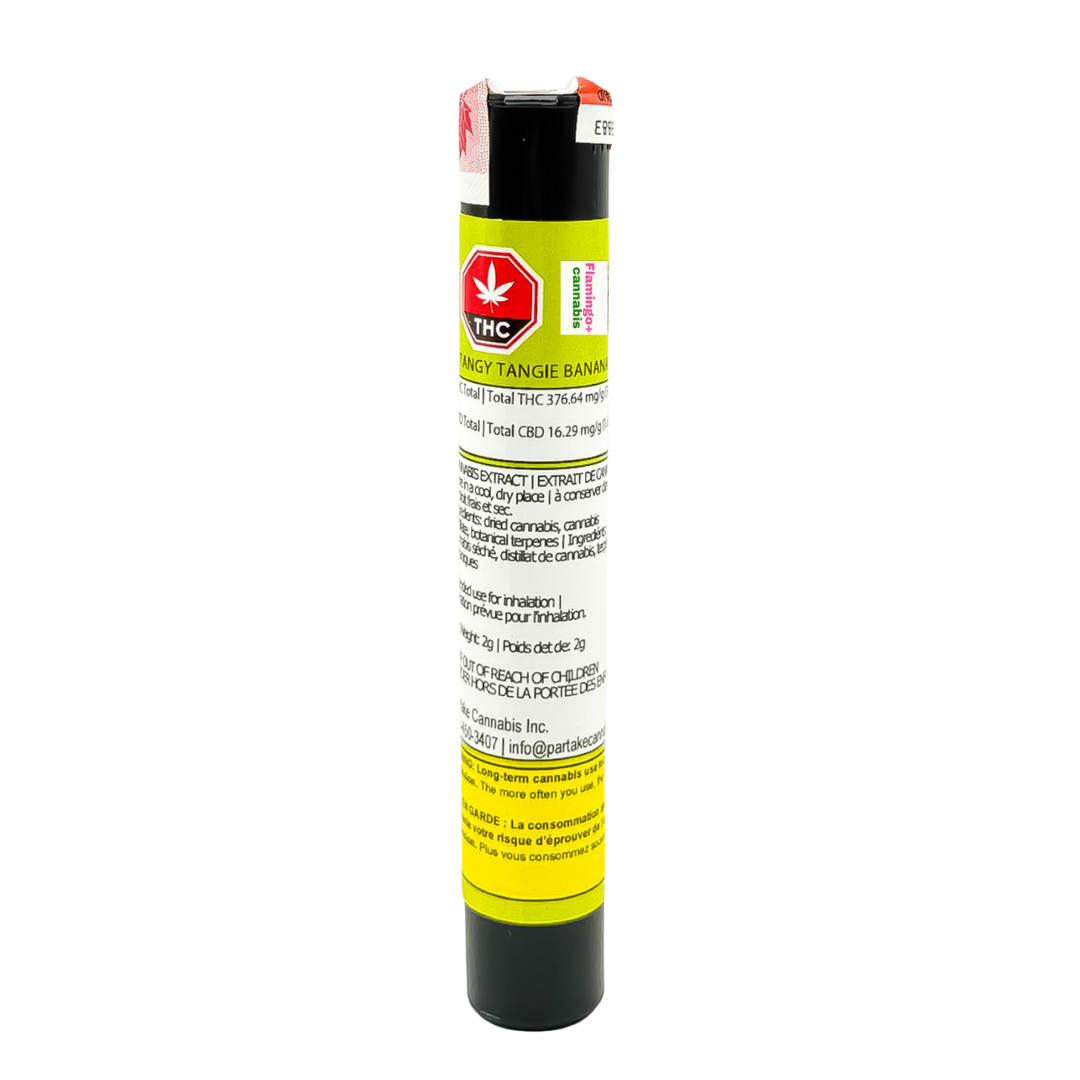 This isn’t your everyday pre-roll—it's the kind of 2-gram beast you spark when you want something big, bold, and built for sharing… or not, depending on your evening plans. The burn is steady, the airflow is smooth, and the clouds roll out full and fragrant. Whether you’re hanging out with friends in Calgary, kicking back at home, or celebrating something special in Alberta, Tangy Tangie Banana brings a little thrill and a whole lot of tropical personality.
